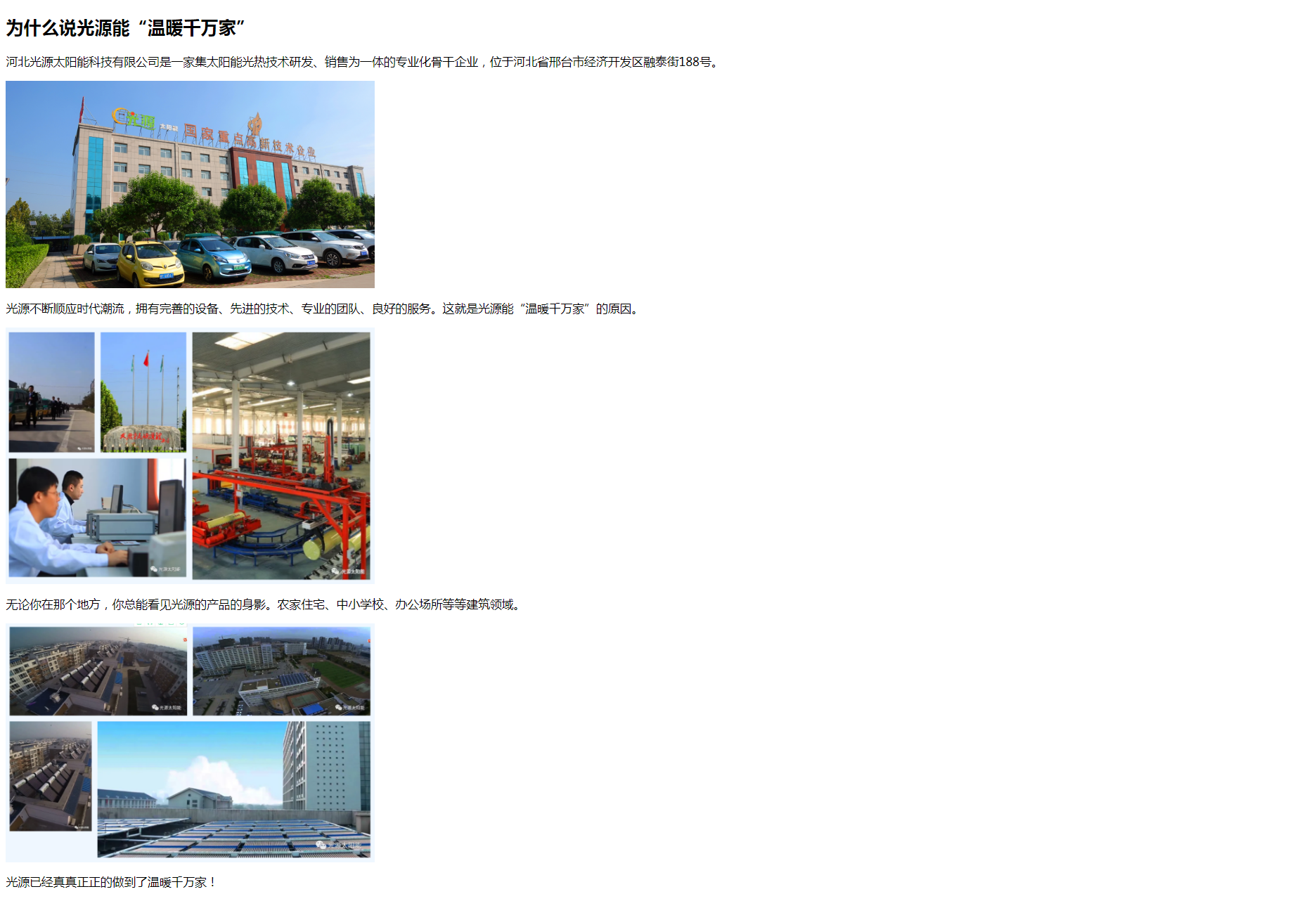 Copyright(C)2021 河北光源太陽(yáng)能 E-mail: hbguangyuan@163.com 地址: 邢臺(tái)經(jīng)濟(jì)開(kāi)發(fā)區(qū)王快鎮(zhèn)北屋村永安路2199號(hào) 關(guān)于光源 | 公司動(dòng)態(tài) | 聯(lián)系我們 | 法律聲明